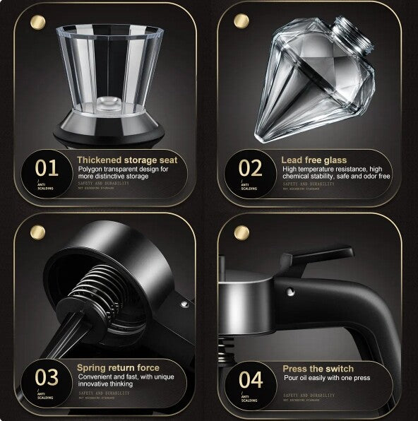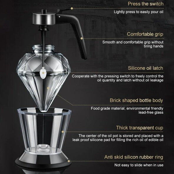 [Diamond Shape Design] This oil dispenser has an elegant and unique diamond shape design, the unique diamond design adds an artistic touch to your kitchen,which is a nice decoration in the kitchen