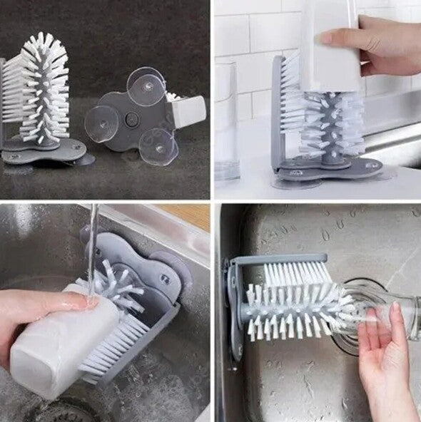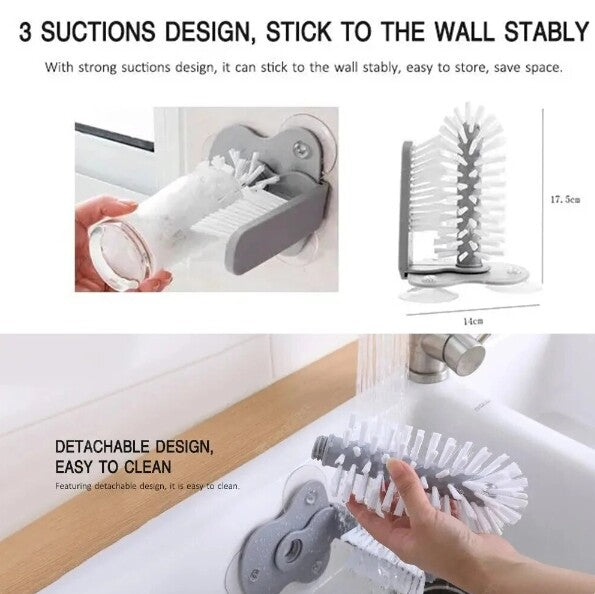 Double brush head design, 360 degree no dead angle cleaning, easy to wash cups, 3 suction cup design, firmly attached to the wall.
